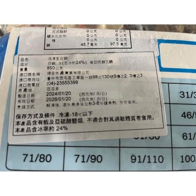 誠實討海人20/30 冷凍白蝦 850g包冰24%/約15~18隻(#活凍白蝦 #大隻白蝦 #冷凍白蝦)