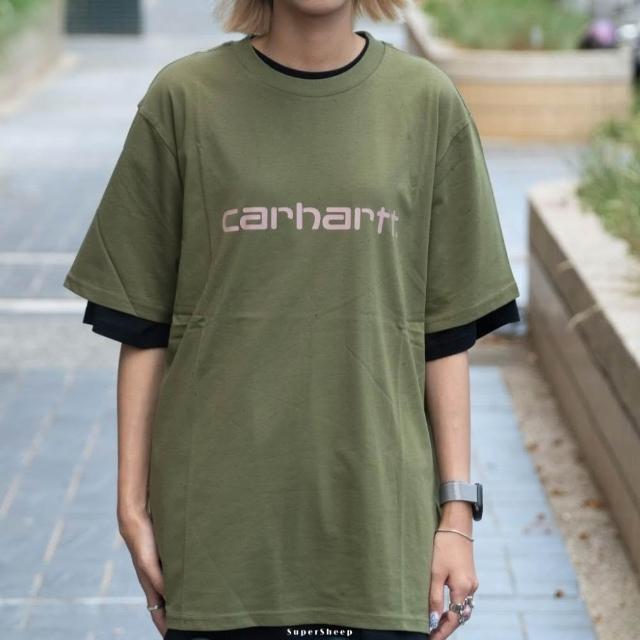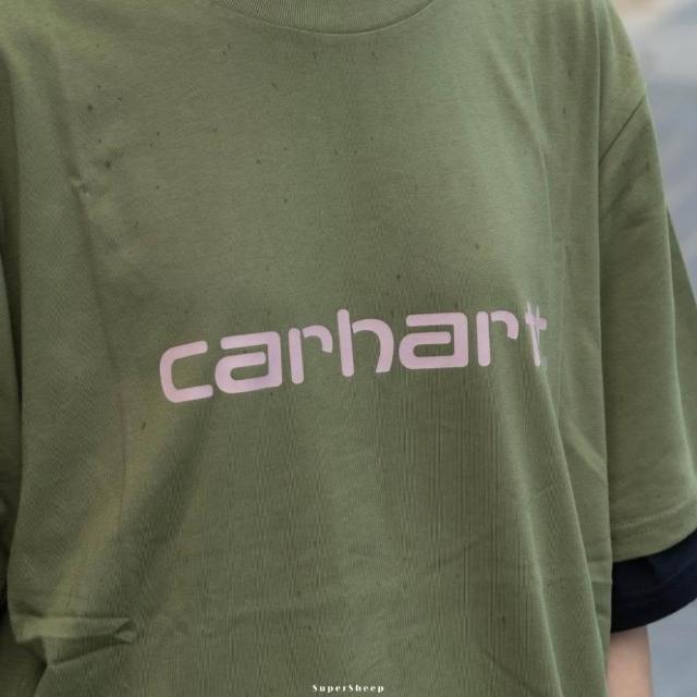 carharttCarhartt WIP script 品牌LOGO 厚磅 短T 男款 粉 深綠 I031047