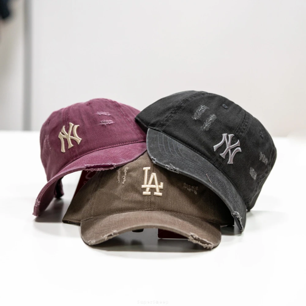 MLBMLB 復古 破壞 水洗 刷舊 刺繡標誌 NY LA 棒球 老帽 棕 深灰 酒紅