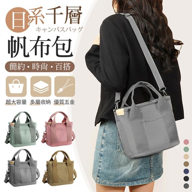 御皇居日系千層帆布包(拉鍊帆布包 手提兩用包)