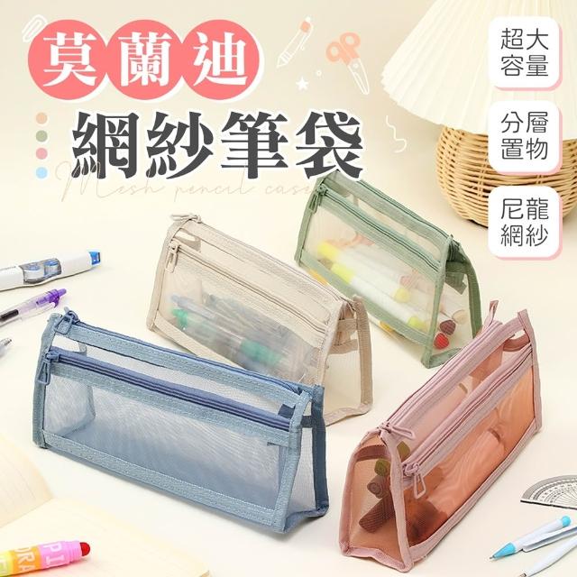 御皇居莫蘭迪網紗筆袋 網紗筆袋 雙層筆袋 雙層網紗筆袋 透明筆袋 三角筆袋 立體筆袋