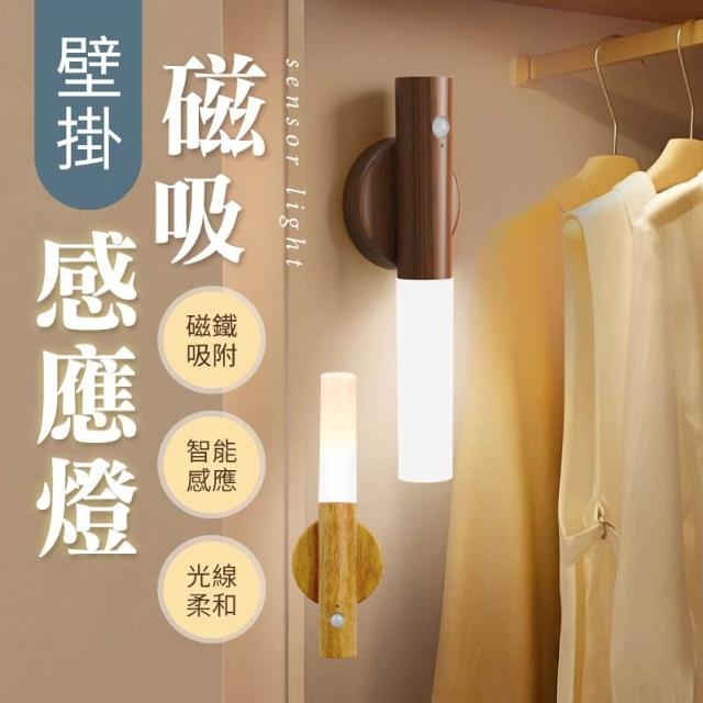御皇居壁掛磁吸感應燈 壁掛感應夜燈 人體感應小夜燈 仿木紋磁吸小夜燈