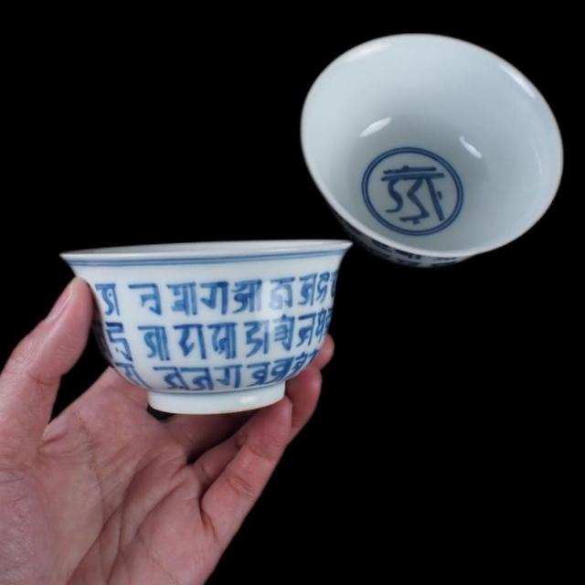 《博古珍藏》明成化 青花梵文杯一對 早期收藏 老件茶杯瓷器 博物館級文物