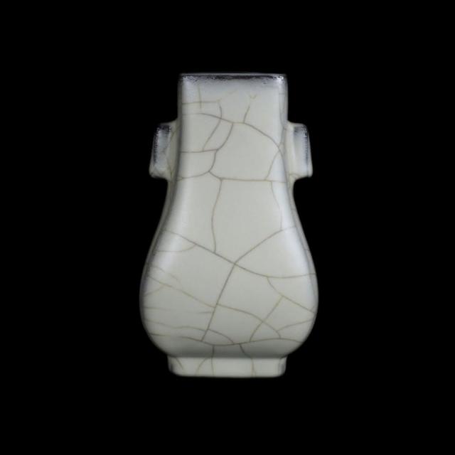 《博古珍藏》宋 官窯月白釉四方貫耳瓶 高15公分 早期收藏 老件花瓶瓷器 博物館級文物