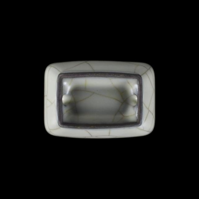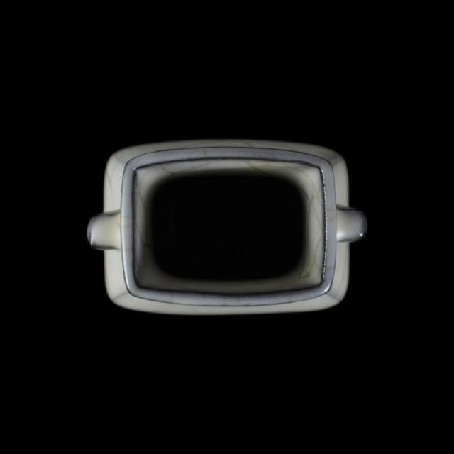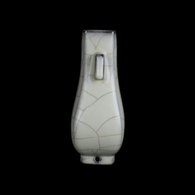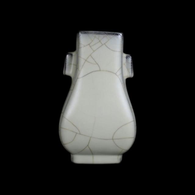 《博古珍藏》宋 官窯月白釉四方貫耳瓶 高15公分 早期收藏 老件花瓶瓷器 博物館級文物