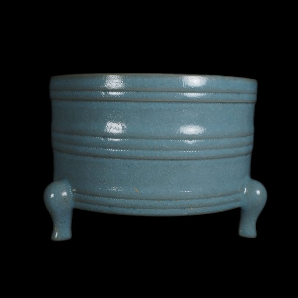 《博古珍藏》宋 汝窯天青釉弦紋三足尊式爐 早期收藏 老件瓷器 博物館級文物