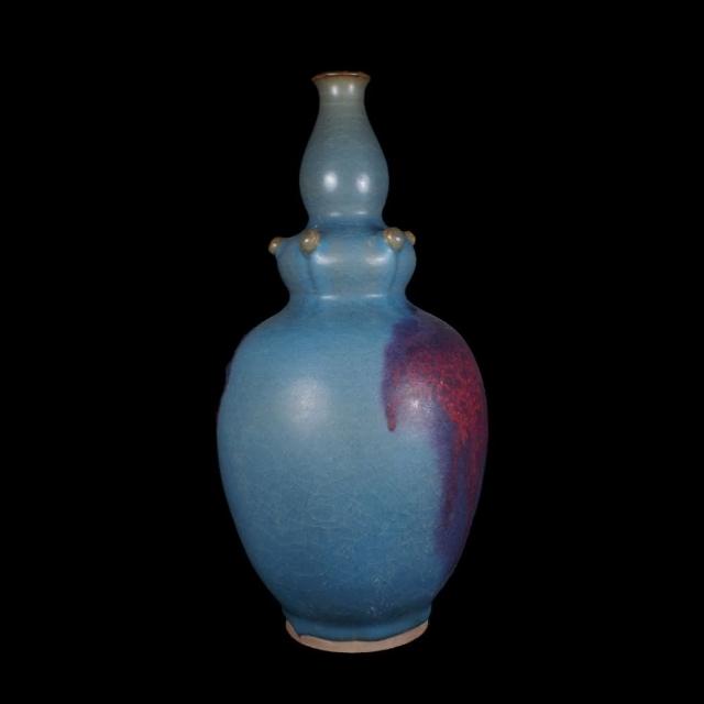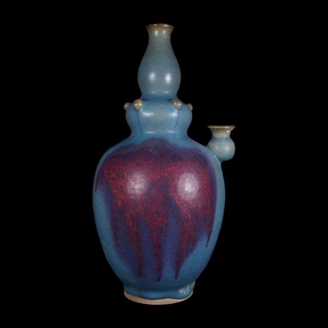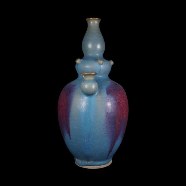 《博古珍藏》元 鈞窯天青釉紫斑淨瓶 早期收藏 老件花瓶瓷器 博物館級文物