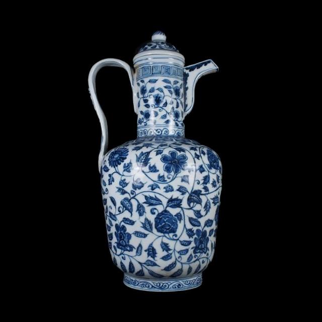 《博古珍藏》明宣德 青花花卉紋執壺 高37公分 早期收藏 老件文物瓷器 博物館級 附錦盒