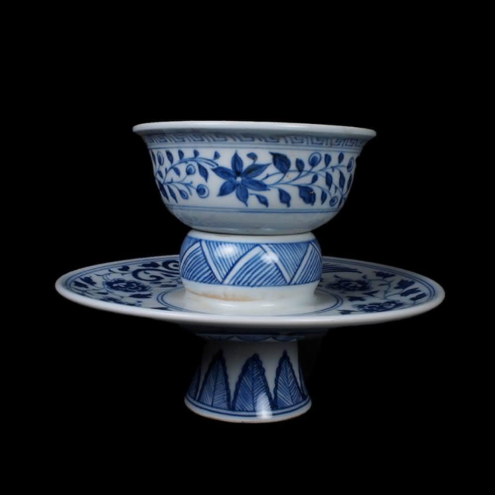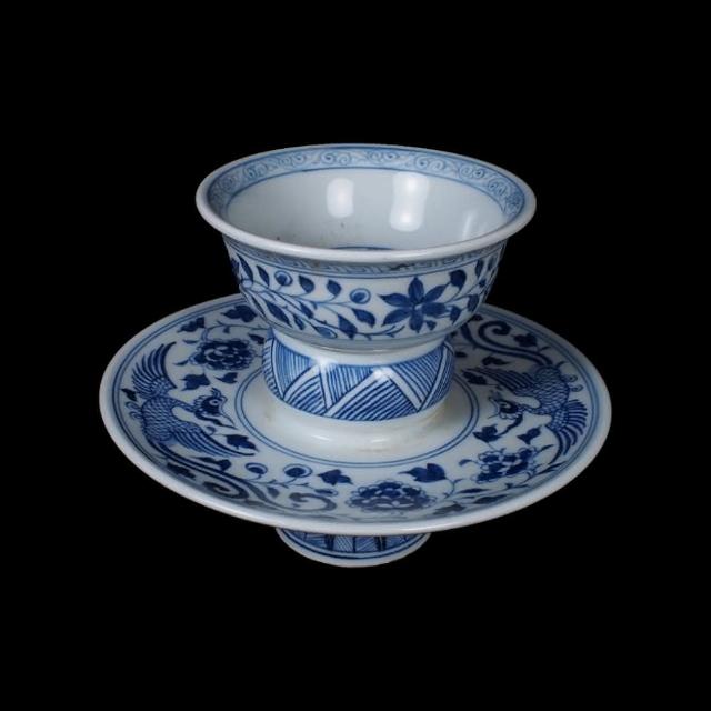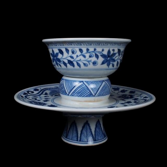 《博古珍藏》元至正 青花花卉紋盞托 早期收藏 老件文物 茶杯瓷器 國際拍賣級