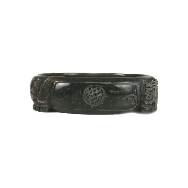 《博古珍藏》天然和闐玉浮雕蟬玉鐲臂環 手環配飾 手圍〉22 早期收藏 絕頂收藏