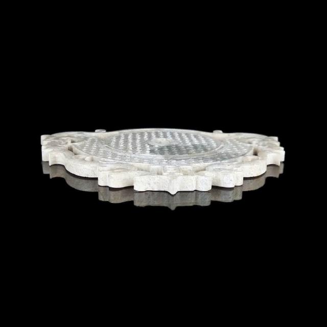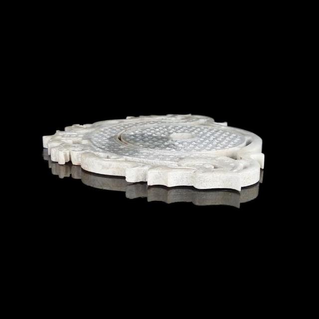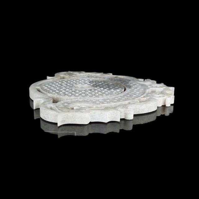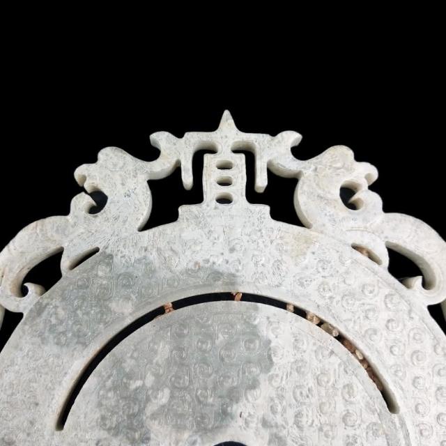 《博古珍藏》雞骨白玉雕宜子孫龍鳳出廓玉璧擺件 132公克 早期收藏