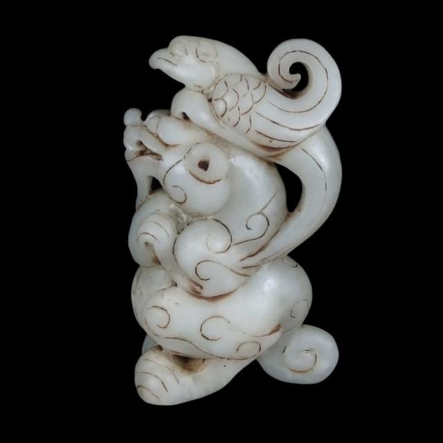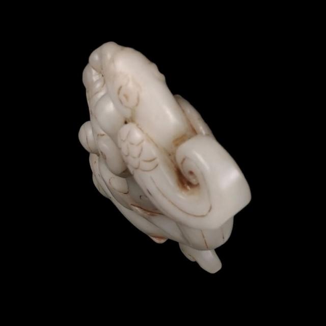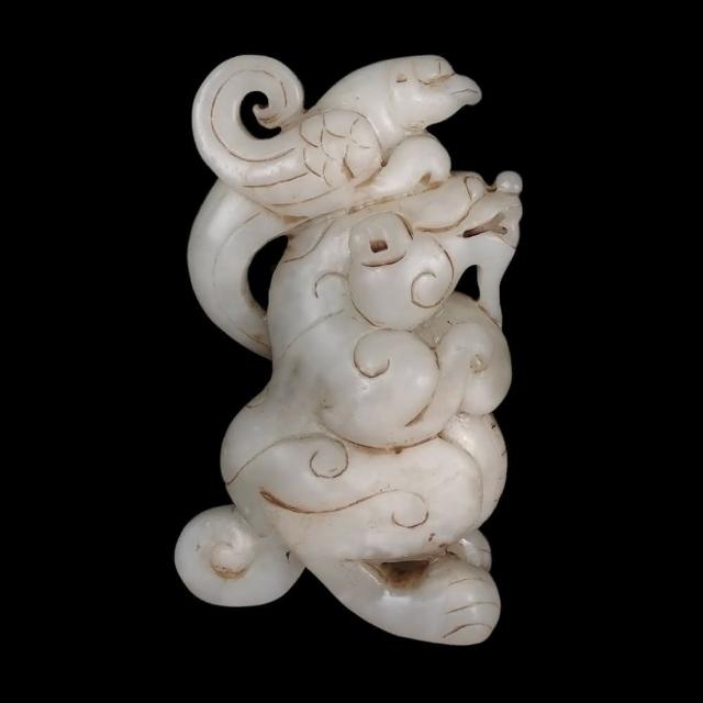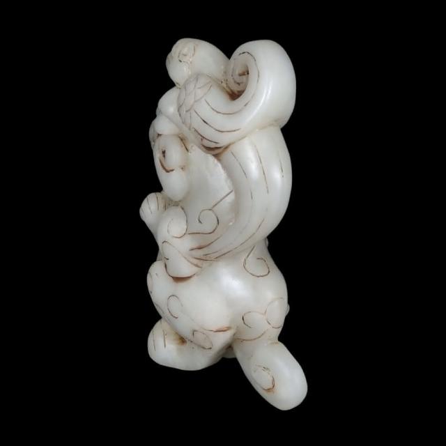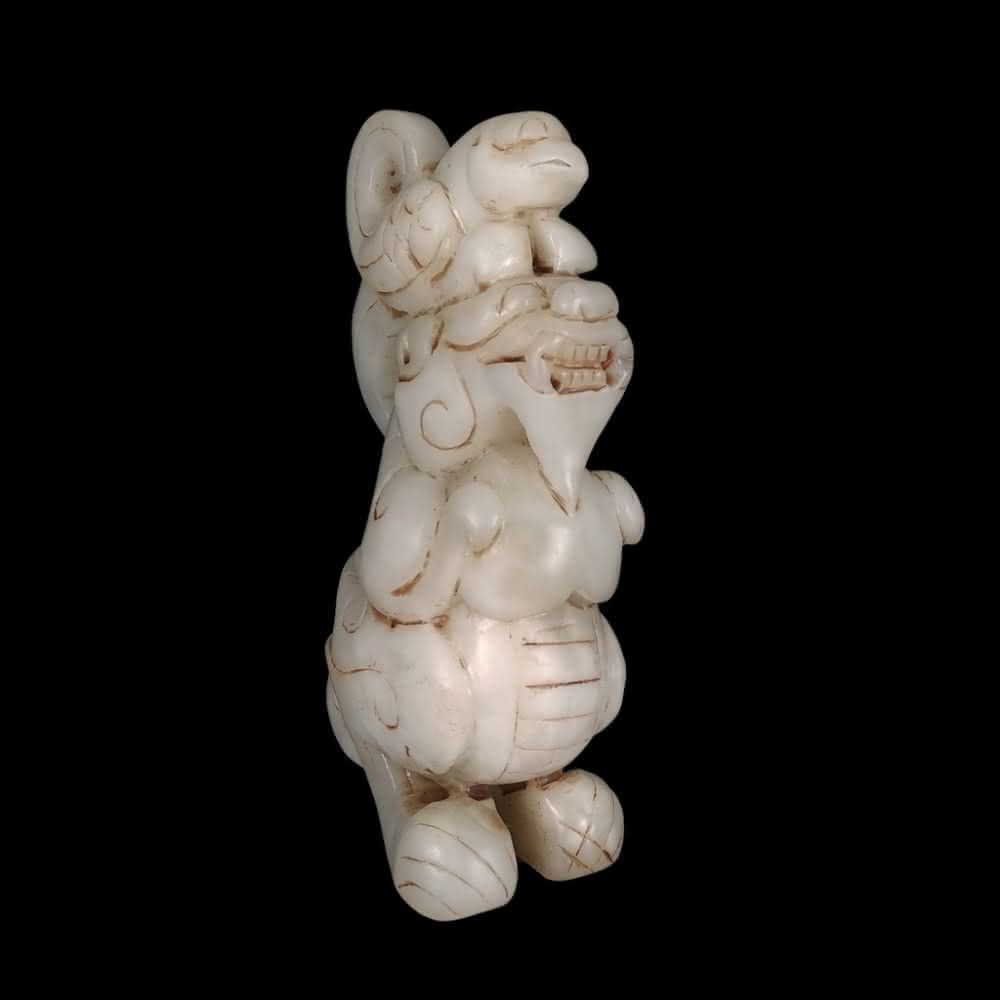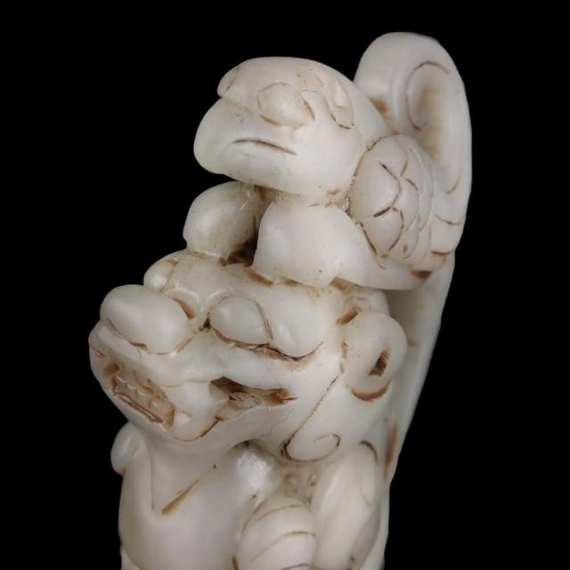 《博古珍藏》天然和闐白玉雕母子獸把玩 398公克 早期收藏