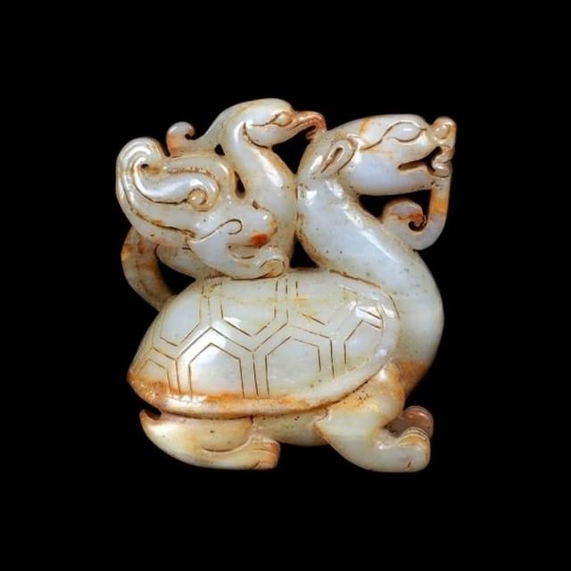 《博古珍藏》天然和闐玉龍龜榮歸擺件 205公克 文房書房擺飾 附收藏錦盒