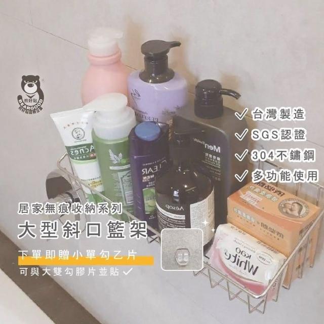 熊好貼國際企業大型斜口籃架(304不鏽鋼置物架層架壁掛收納掛鉤掛架可用凹凸紋路平滑滑面皆可貼無痕掛勾)