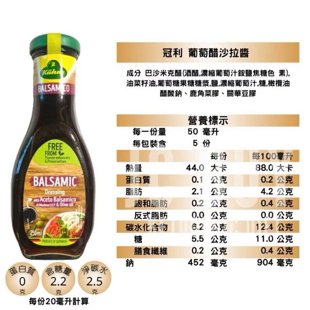 冠利Kühne 沙拉醬 凱薩醬 優格醬 意大利沙拉醬 千島醬 葡萄醋沙拉醬 蜂蜜芥末醬 250ml/瓶