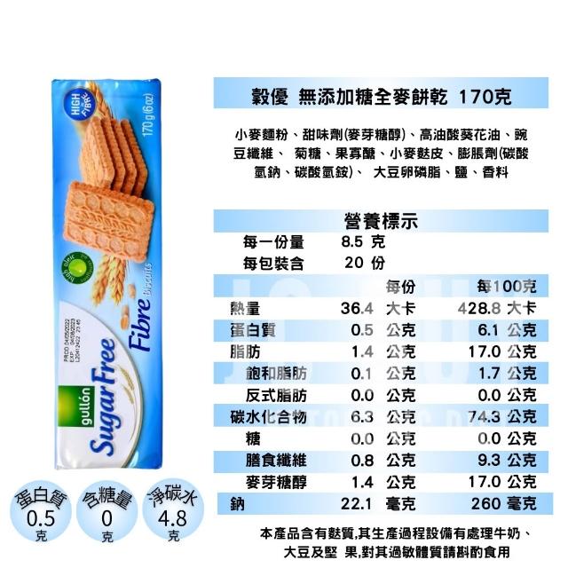 榖優Gullon 無添加精緻糖 巧克力豆/全麥消化餅/穀物餅乾 150g/包