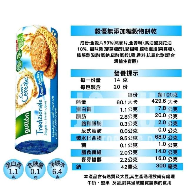 榖優Gullon 無添加精緻糖 巧克力豆/全麥消化餅/穀物餅乾 150g/包