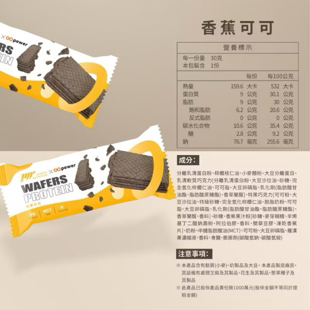 gogopower 果果能量 蛋白威化餅 減糖威化餅 30g/包
