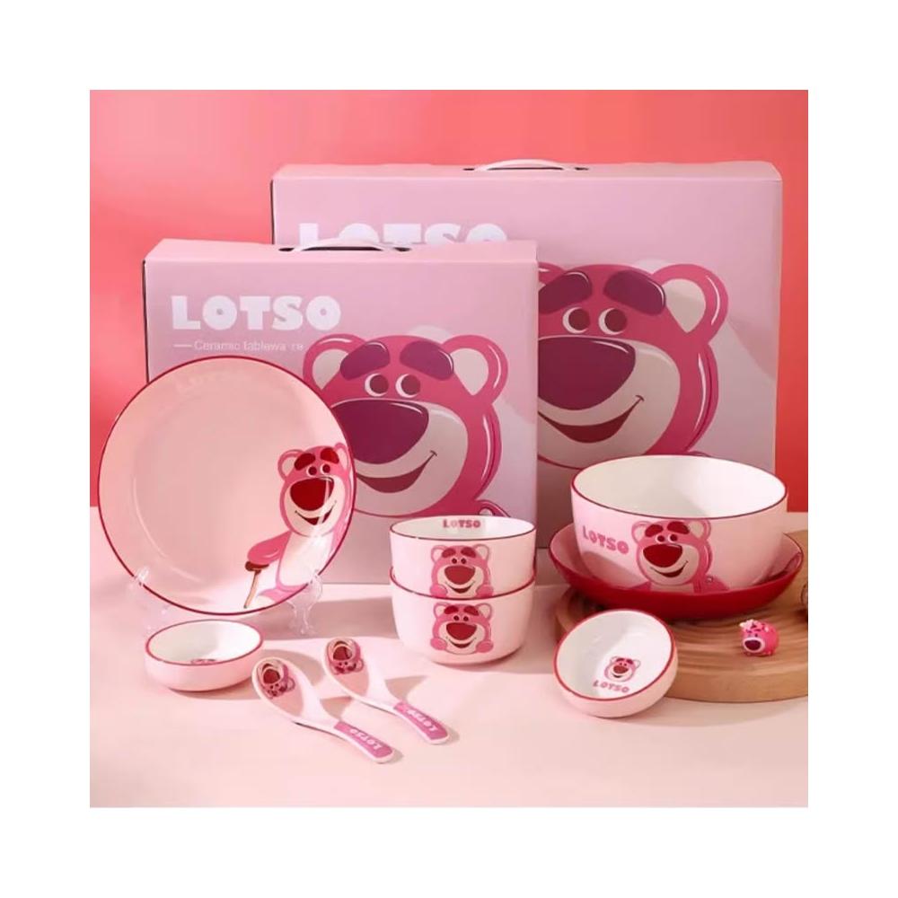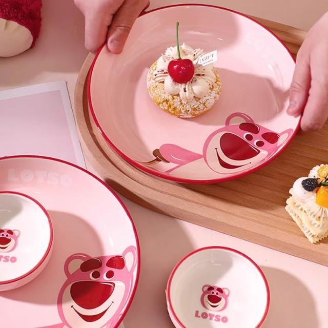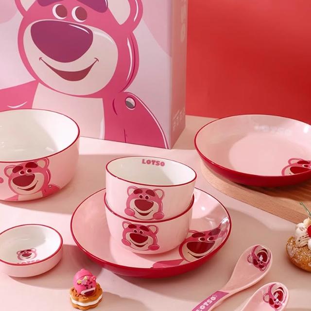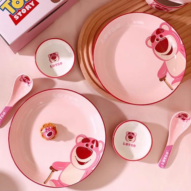 Disney 迪士尼草莓熊 陶瓷餐具4件組 禮盒 玩具總動員 湯匙 碗 盤子 碟子 熊抱哥