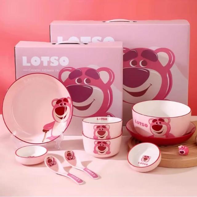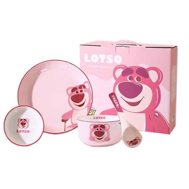 Disney 迪士尼草莓熊 陶瓷餐具4件組 禮盒 玩具總動員 湯匙 碗 盤子 碟子 熊抱哥