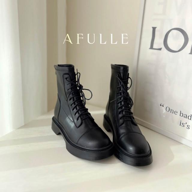 𝐴𝐹𝑈𝐿𝐿𝐸現貨真皮✨厚底軍靴綁帶中筒馬丁短靴 女靴 女鞋 襪靴 綁帶