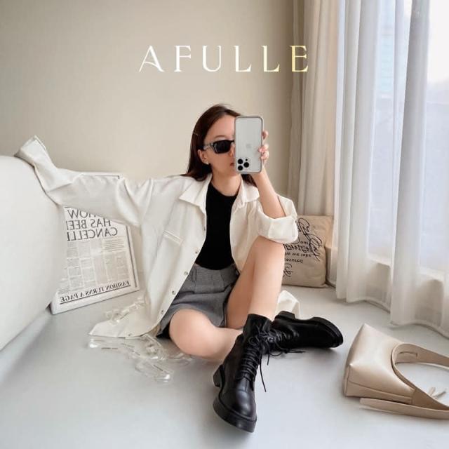 𝐴𝐹𝑈𝐿𝐿𝐸現貨真皮✨厚底軍靴綁帶中筒馬丁短靴 女靴 女鞋 襪靴 綁帶