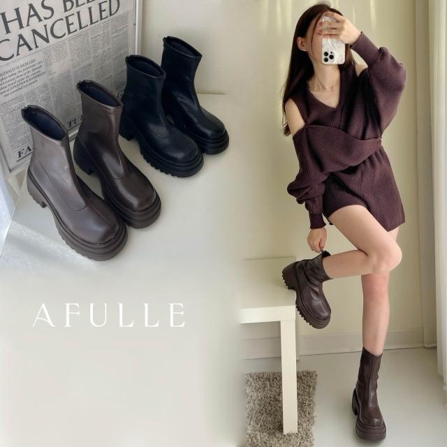 𝐴𝐹𝑈𝐿𝐿𝐸現貨 超貼腿✨彈力質感皮革中筒貼腿後拉鏈厚底襪靴 瘦瘦靴 切爾西靴 女靴 女鞋 短靴 厚底 皮