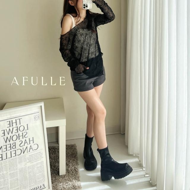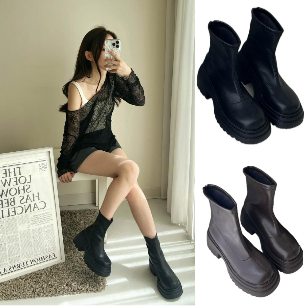 𝐴𝐹𝑈𝐿𝐿𝐸現貨 超貼腿✨彈力質感皮革中筒貼腿後拉鏈厚底襪靴 瘦瘦靴 切爾西靴 女靴 女鞋 短靴 厚底 皮