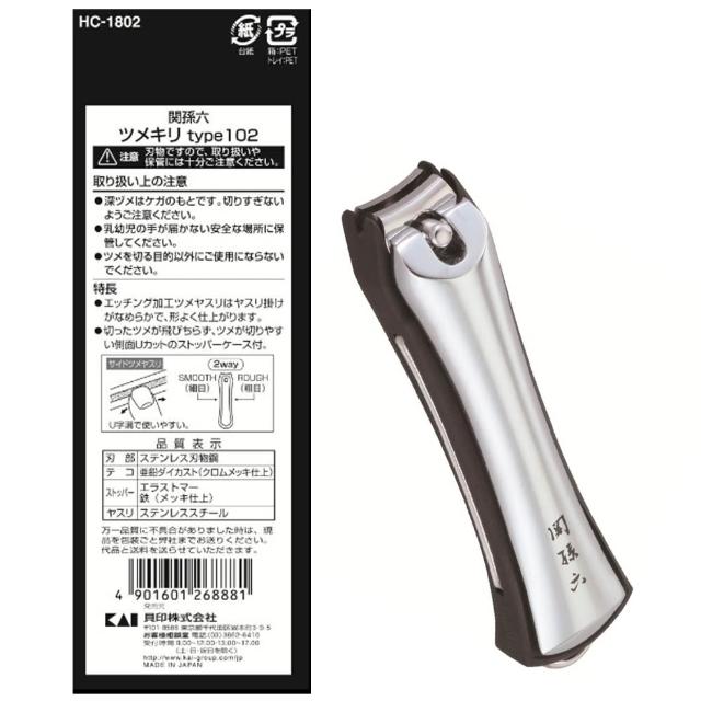 KAI 貝印關孫六 指甲剪 指甲刀 附銼刀 彎口 銀 HC-1802(日本原裝現貨)