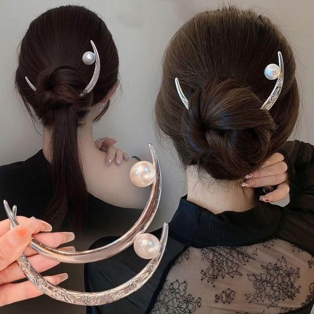 {遇見臻品} C069古風復古珍珠幾何半月挽髮簪髮髻頭飾古風髮飾古風髮飾珍珠髮簪漢服頭飾古裝頭飾頭髮髮釵髮插束髮盤髮器