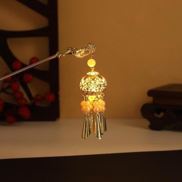 {遇見臻品}C079古風流蘇髮燈籠簪子金屬蓮花宮廷仙氣頭飾漢服髮飾中國古風漢服頭飾超仙髮飾古裝頭飾髮髻珍珠髮簪丸子頭髮