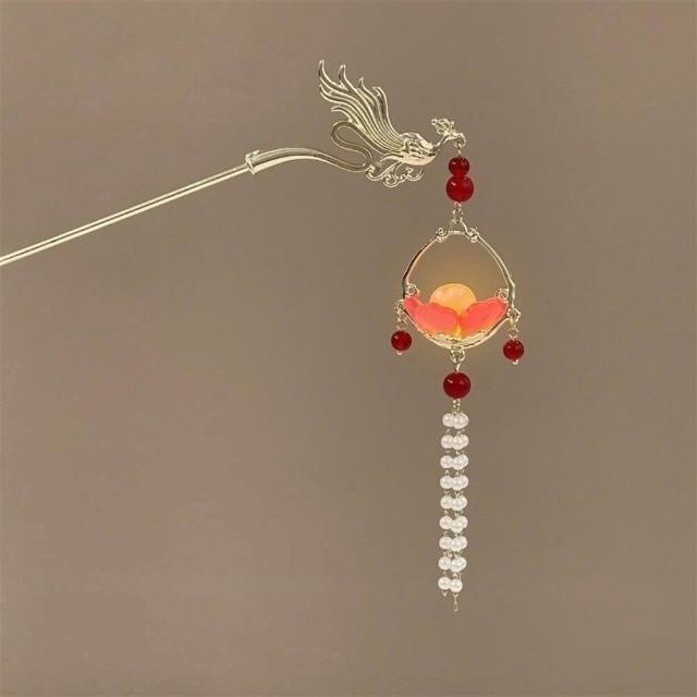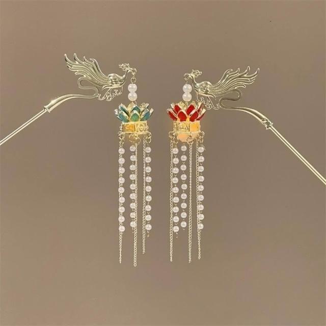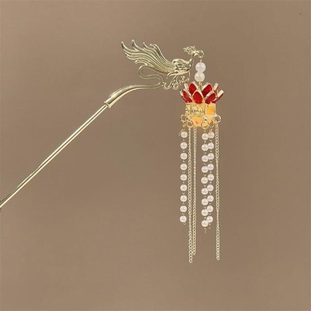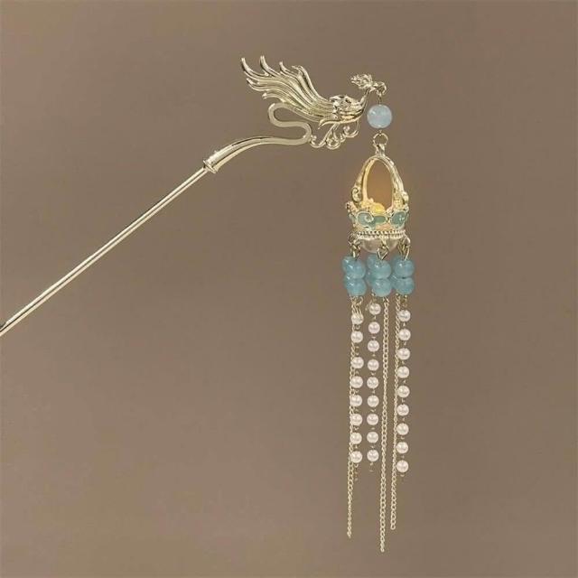 {遇見臻品}C084 古風流蘇髮簪籠簪子金屬鳳凰宮廷仙氣頭飾中國古風漢服頭飾古裝頭飾髮髻髮簪頭飾中國風髮飾珍珠髮簪丸子頭
