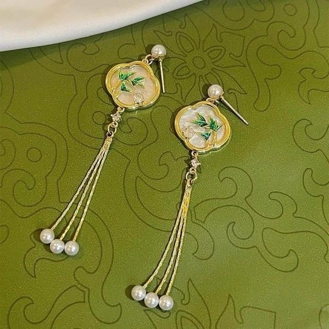 {遇見臻品}BG133旗袍耳環新款中翠竹流蘇耳環國風小眾耳飾流蘇耳環袍馬面裙耳環造型耳環古風耳環復古風耳環女生氣質耳環