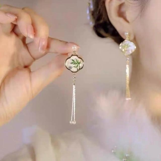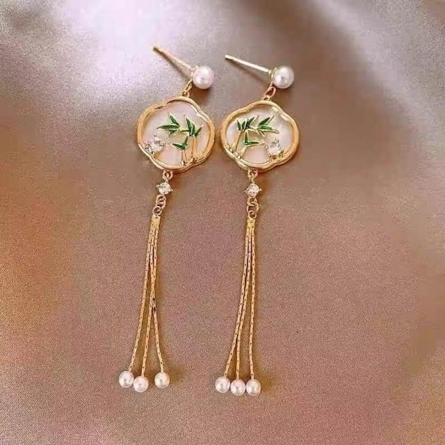{遇見臻品}BG133旗袍耳環新款中翠竹流蘇耳環國風小眾耳飾流蘇耳環袍馬面裙耳環造型耳環古風耳環復古風耳環女生氣質耳環