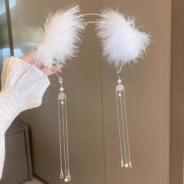 {遇見臻品}FA095羽毛頭飾女流蘇髮箍服裝道具直播頭飾古風仙氣氣蘇髮箍皇冠畢業拍照頭飾舞台表演髮飾品寫真頭飾禮服頭飾