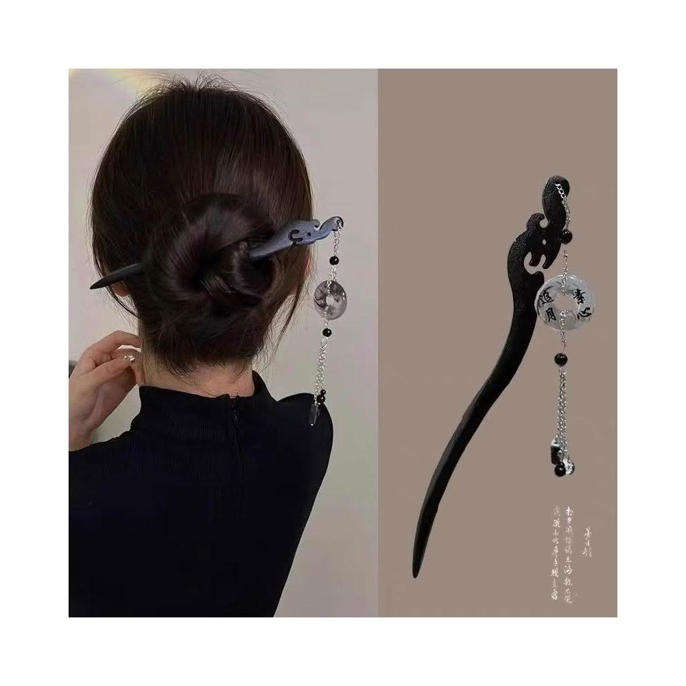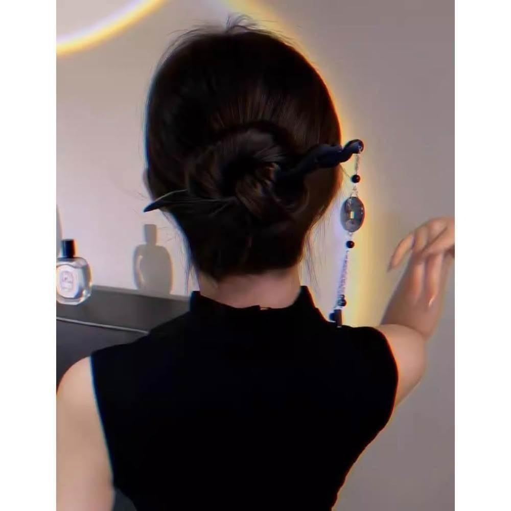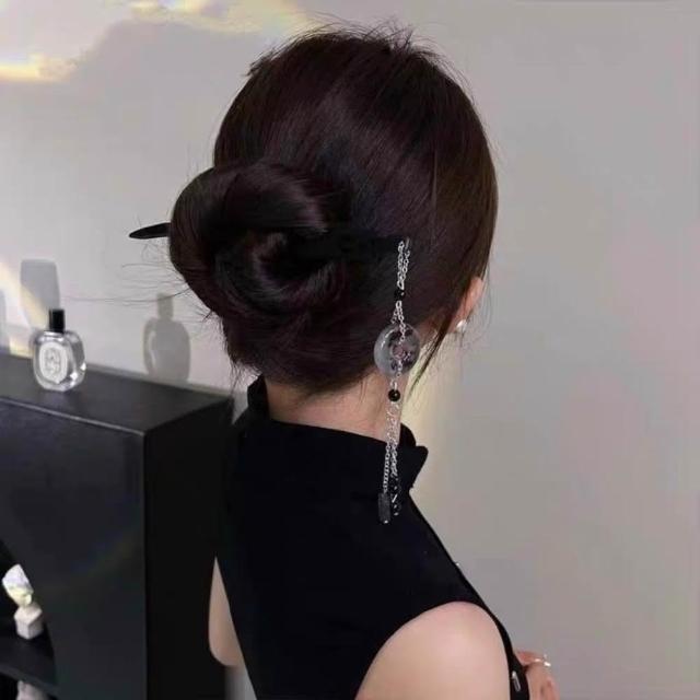 {遇見臻品} C090旗袍髮簪流蘇髮簪古風髮簪清雅古風清冷感發釵新中式流蘇古風黑檀木髮簪旗袍髮釙漢服盤髮簪子髮髻