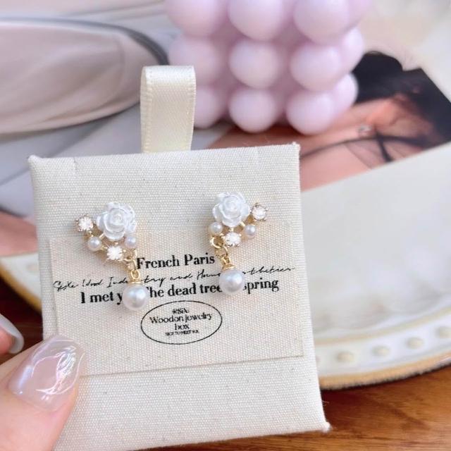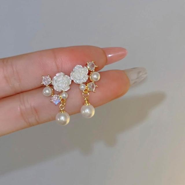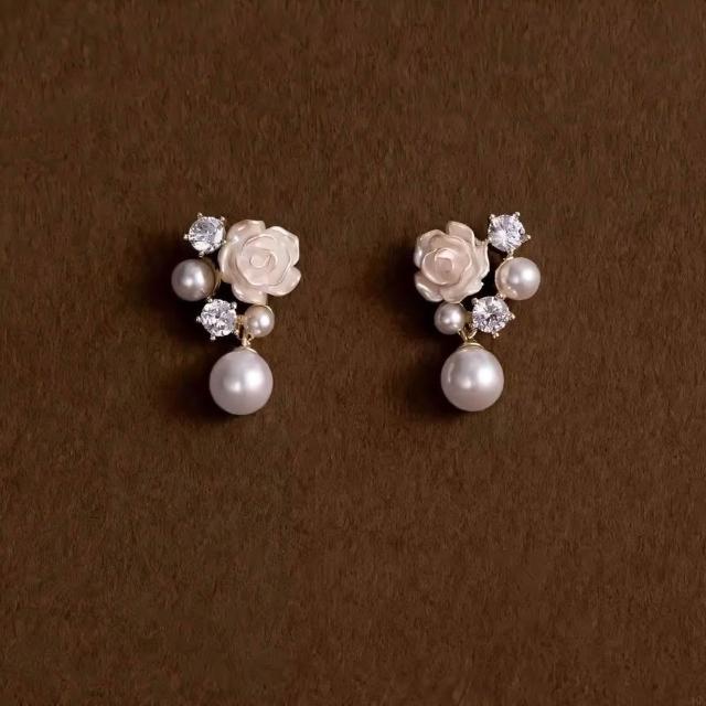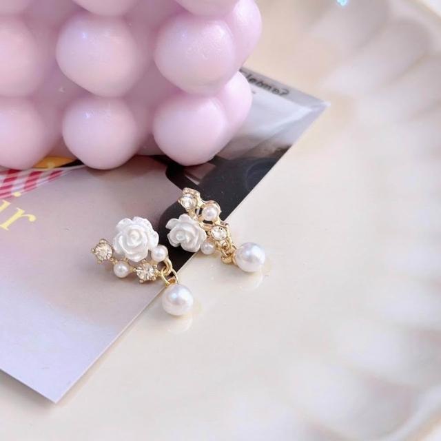 {遇見臻品}BG233夾式及耳針耳環輕奢珍珠耳環山茶花耳ins潮春夏爆款小清新山茶花耳環花瓣耳環女生氣質耳環復古風耳環