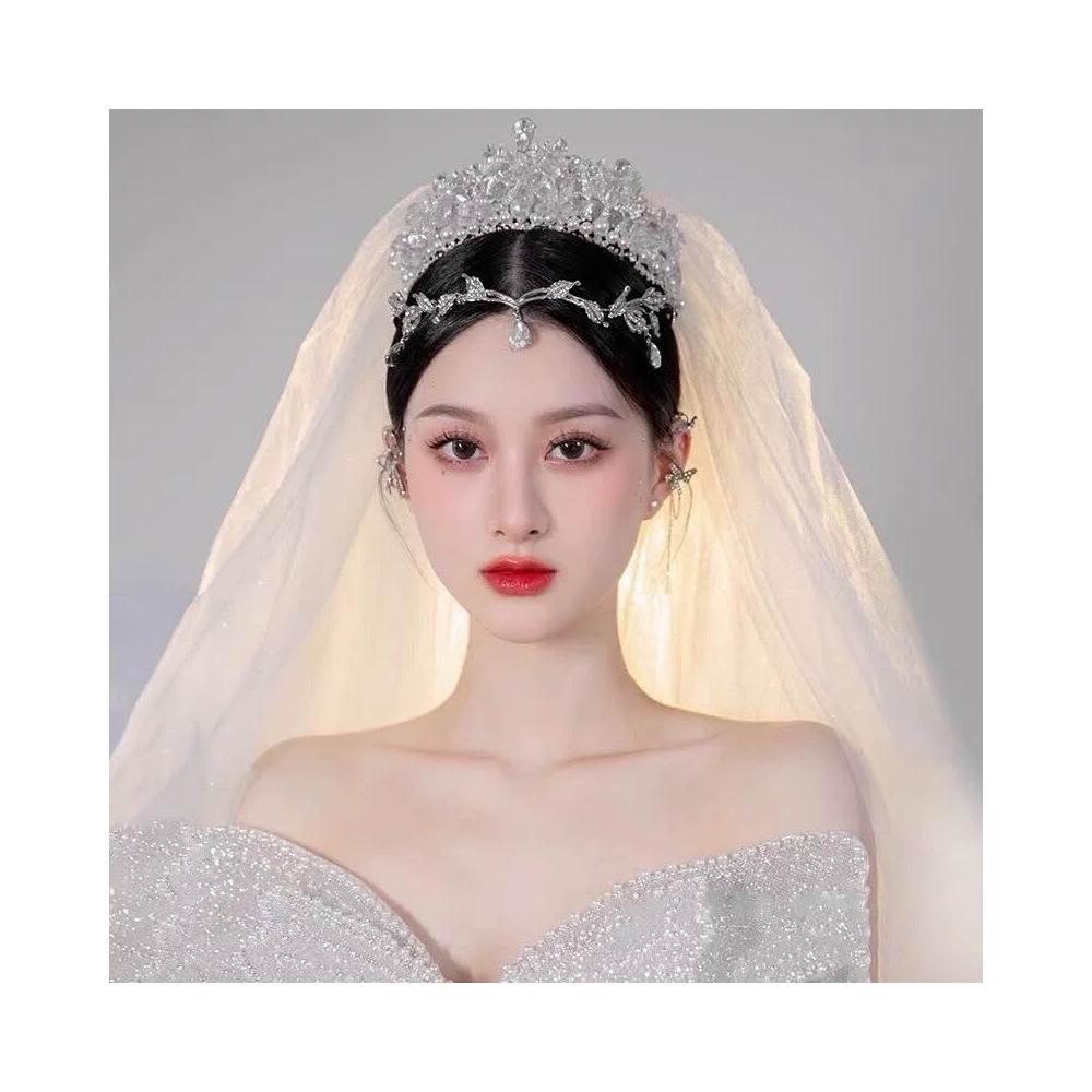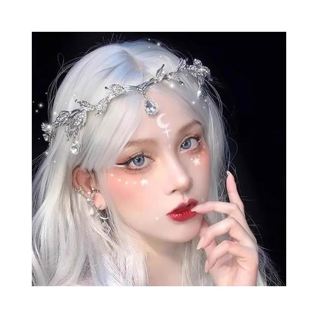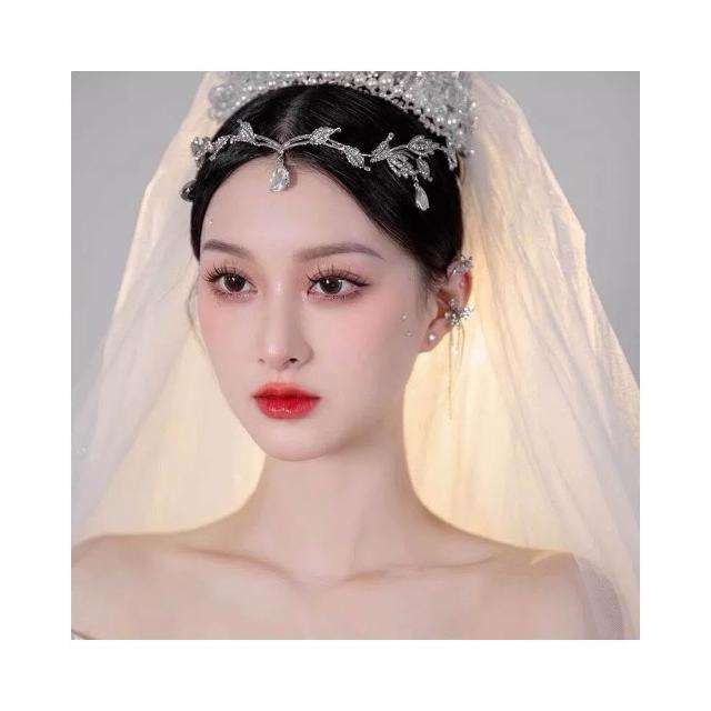 {遇見臻品}FA123白色新娘婚紗水晶皇冠頭飾異國風情頭飾漢服古裝結婚頭紗額飾水滴額飾精靈髮箍異國波西米亞頭飾新娘頭飾
