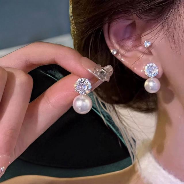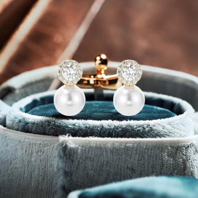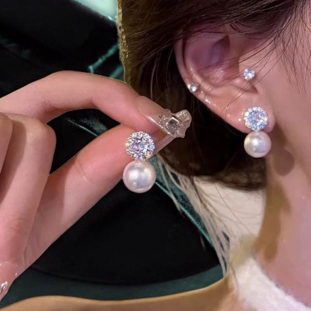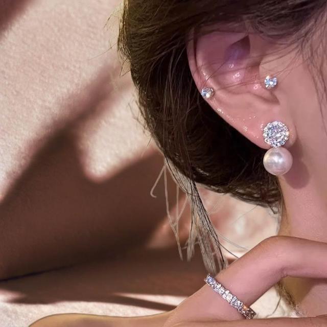 {遇見臻品}BG360閃鑽珍珠耳環文藝復古耳飾鋯石珍珠耳釘優雅氣質金屬耳環優雅氣質金屬耳環優雅氣質金屬耳冷淡風飾品