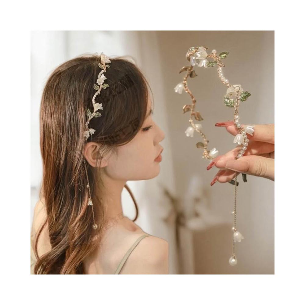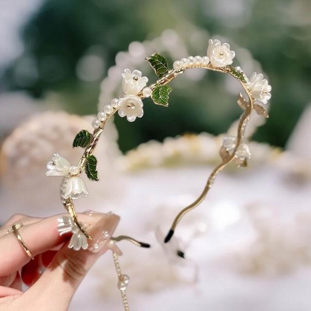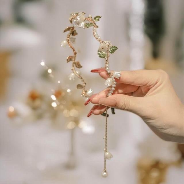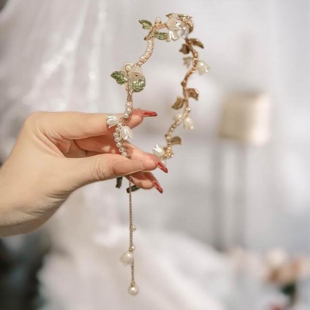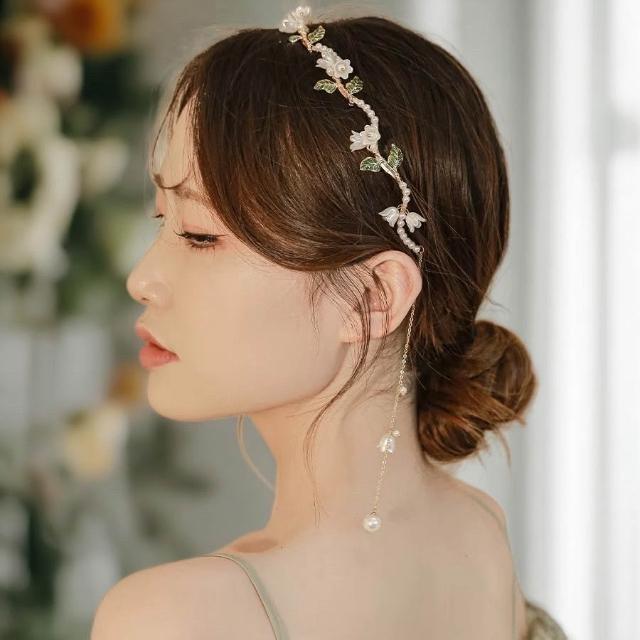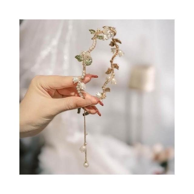 {遇見臻品}FA160氣質鈴蘭珍珠髮箍新娘頭飾楓葉頭飾女童禮服髮飾古裝頭飾花仙子精靈花環髮箍婚紗攝影頭花婚紗髮飾中國風