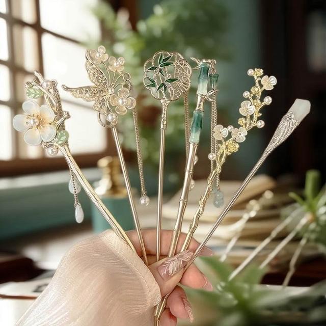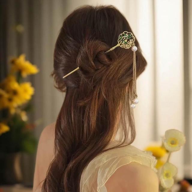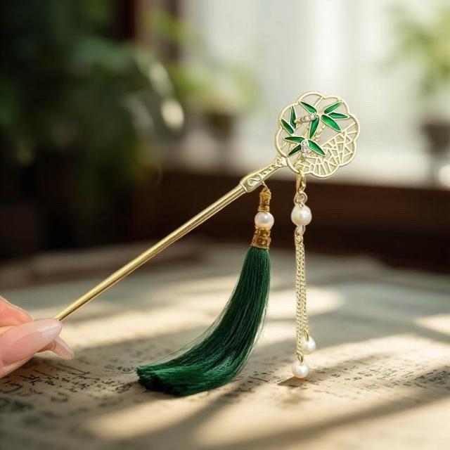 {遇見臻品}C113竹子團扇髮簪古風髮飾流蘇髮簪漢服旗簪子步搖骨架古風流髮簪古裝簪子髮髻新中式簪子漢服頭飾馬面裙髮釵頭飾