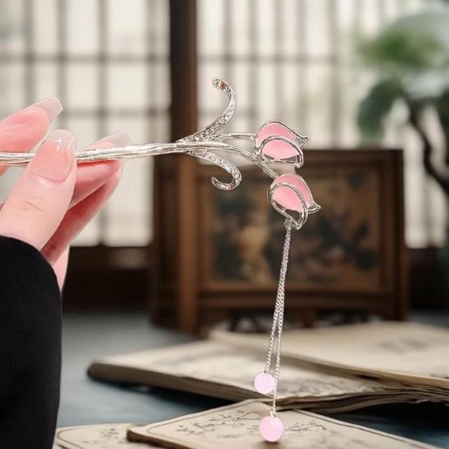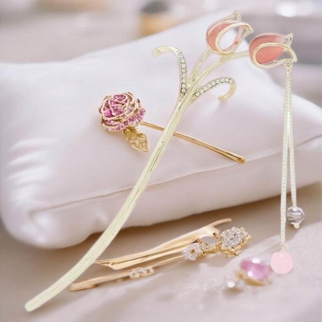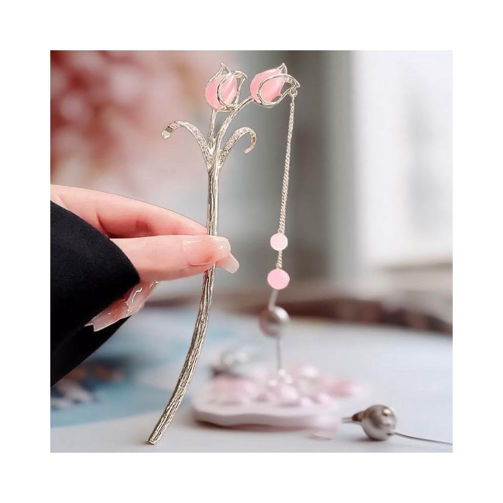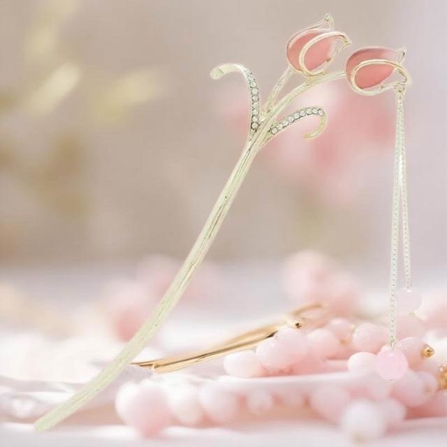 {遇見臻品}C117鬱金香流蘇步搖髮簪花卉髮釵古風漢服旗袍髮飾復粉色髮簪髮釵新中式流蘇髮髻新中式國風釵子馬面裙配件髮簪
