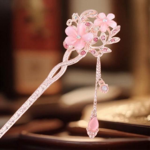 {遇見臻品}C120古風花朵流蘇髮簪女童漢服髮簪新中式馬面裙簪子頭飾新中式粉色髮髻粉色花朵髮簪日常盤髮髮釵新年簪子髮飾
