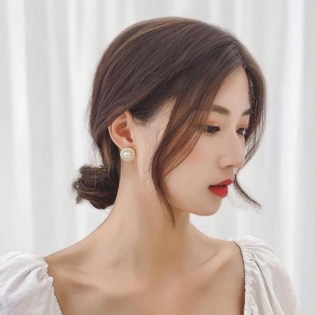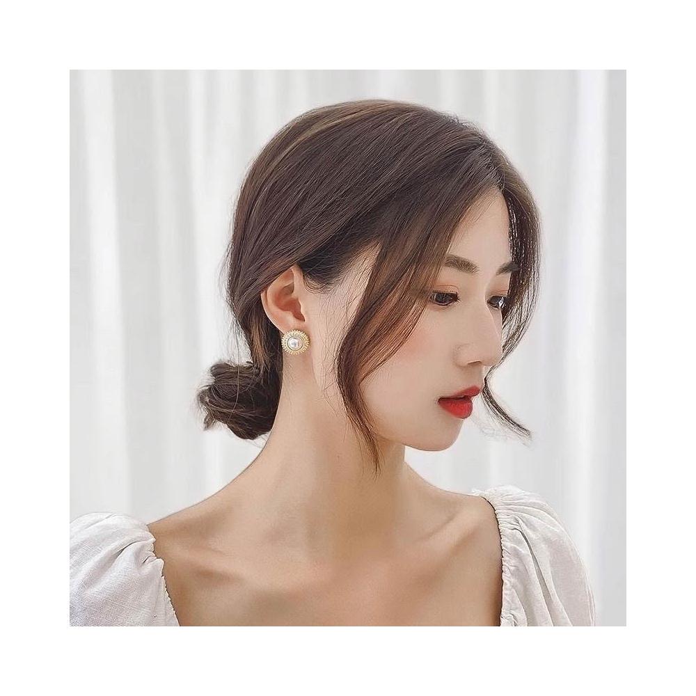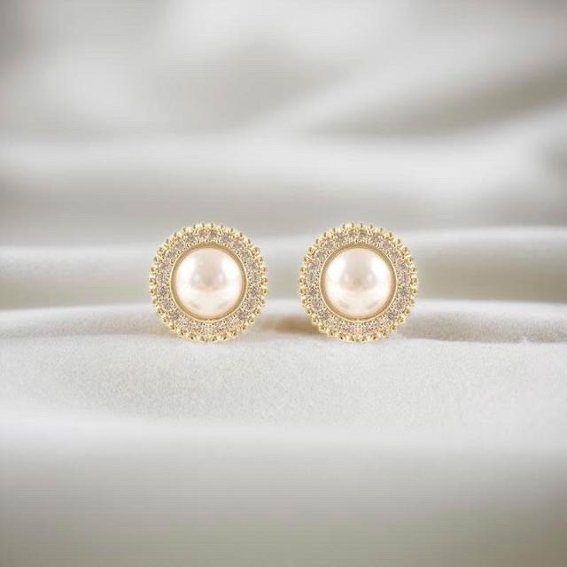 {遇見臻品}BG413新中式溫柔優雅珍珠耳環中國古風耳飾古風耳環小香風珍珠耳環超閃復古文藝簡約圓形鑲耳環法式小香風耳飾