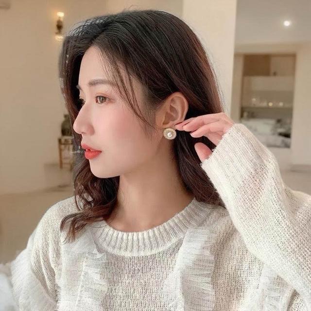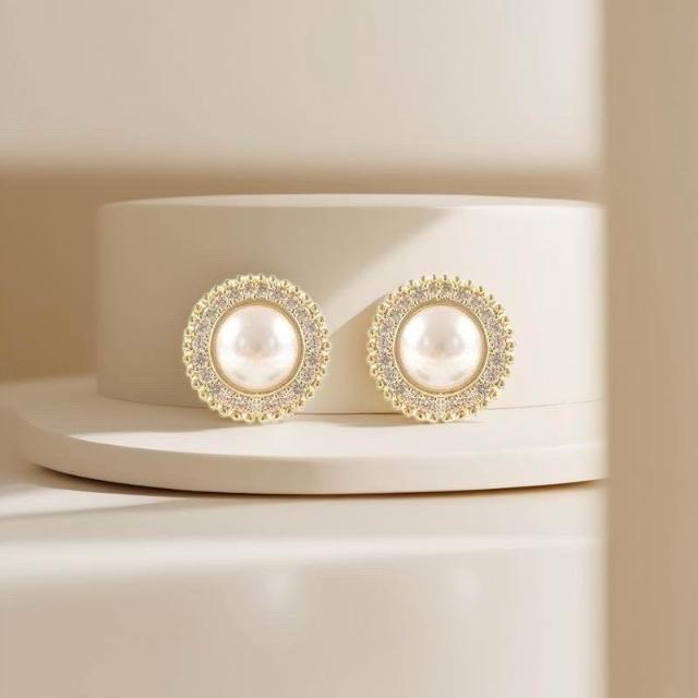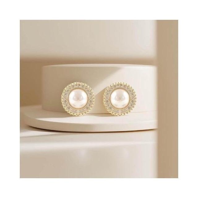 {遇見臻品}BG413新中式溫柔優雅珍珠耳環中國古風耳飾古風耳環小香風珍珠耳環超閃復古文藝簡約圓形鑲耳環法式小香風耳飾