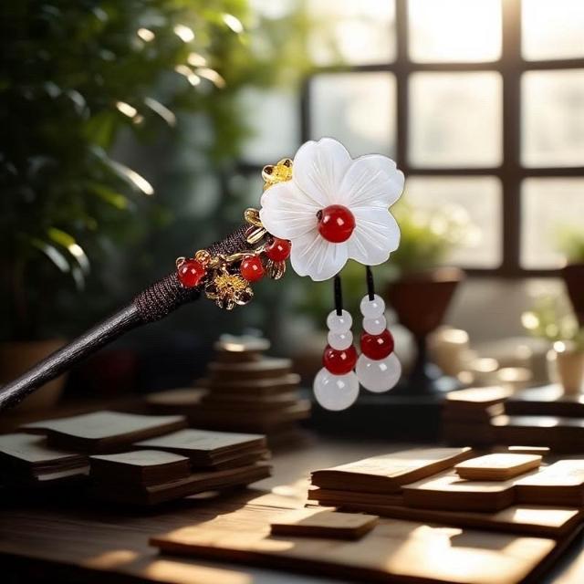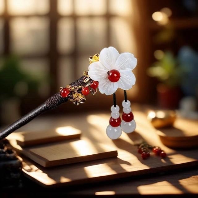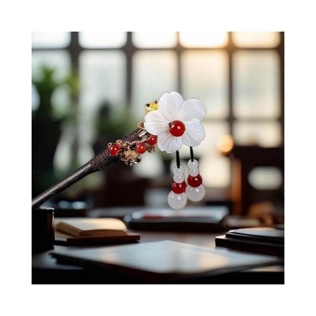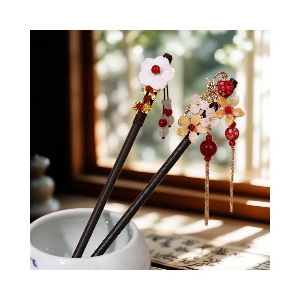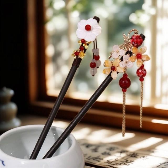 {遇見臻品}C133千秋古風髮簪流蘇步搖簪子髮釵漢服配件挽髮古裝花朵髮髻國風漢服髮釵子漢服旗袍頭飾中式髮簪配件女童新中式