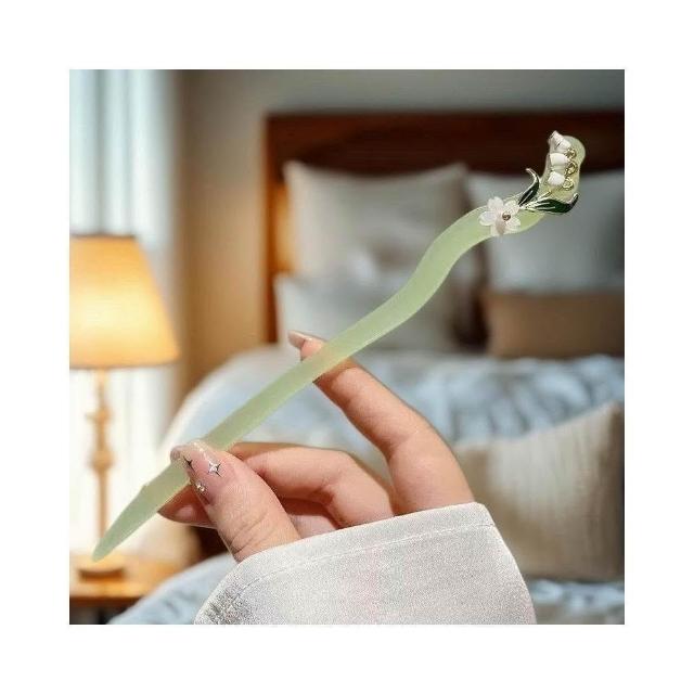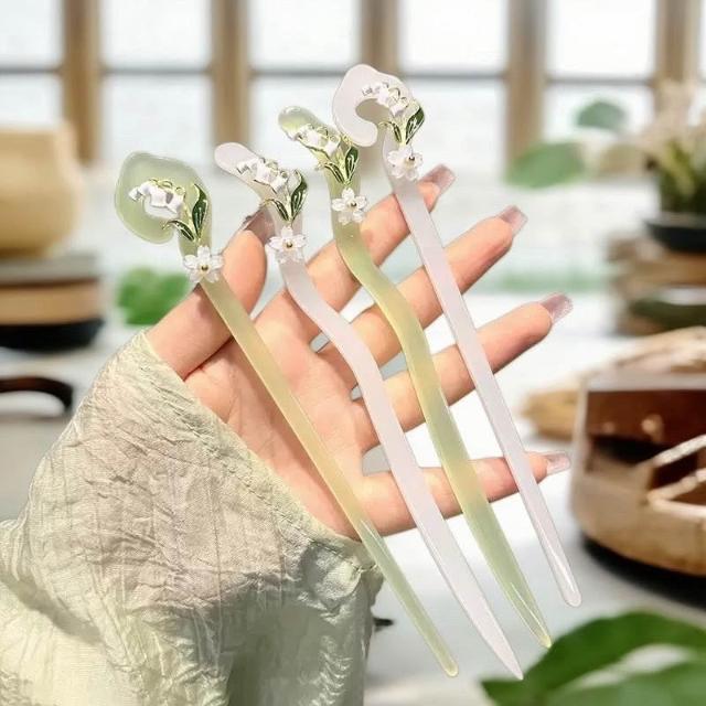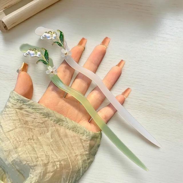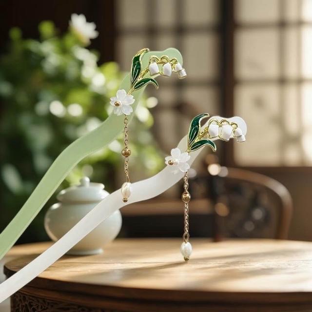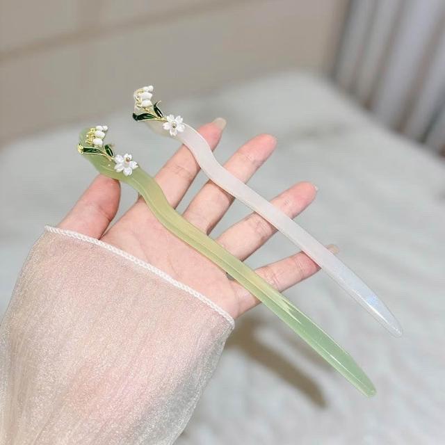 {遇見臻品}C136醋酸髮簪木蘭流蘇髮簪髮釵鈴蘭花髮簪白玉蘭髮簪玉髮簪漢服旗袍頭飾花朵髮簪旗袍髮簪盤髮簪馬面裙配飾新中式