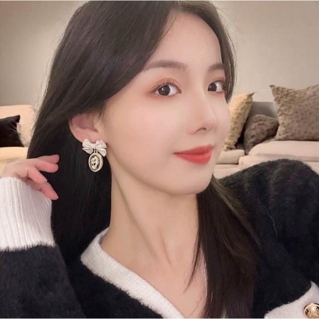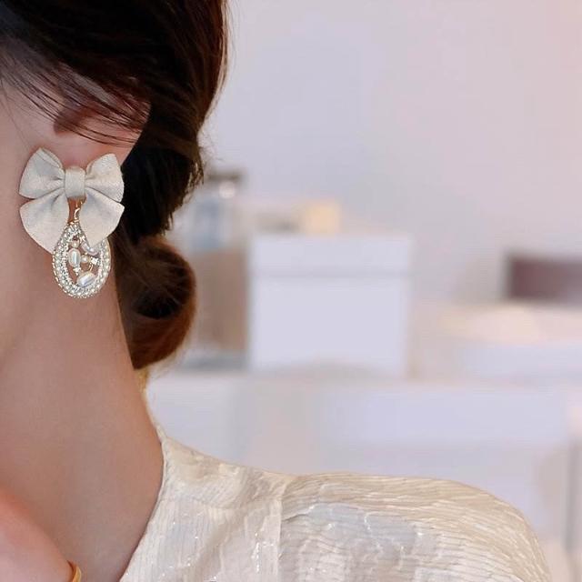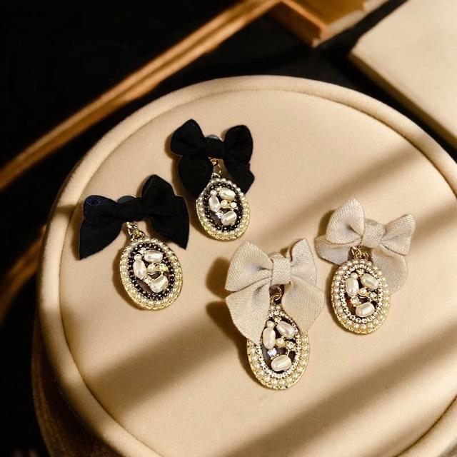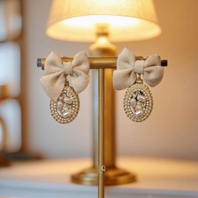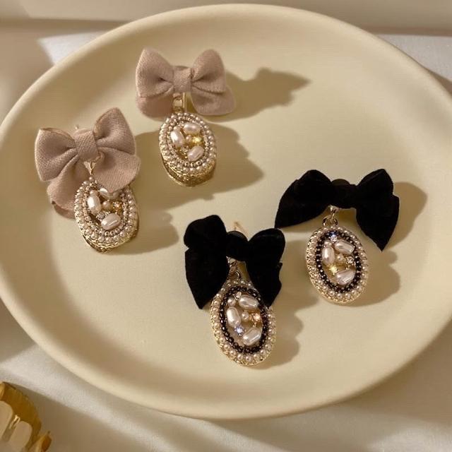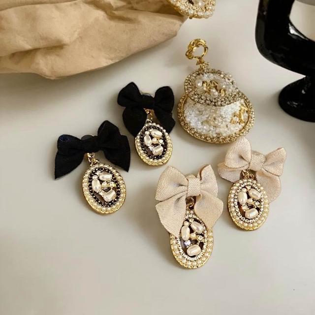 {遇見臻品}BG436耳夾耳針法式復古珍珠耳環秋冬蝴蝶結耳夾小香風蝴蝶結法式復古巴洛克耳環耳環復古復古白色絲絨蝴蝶結耳環