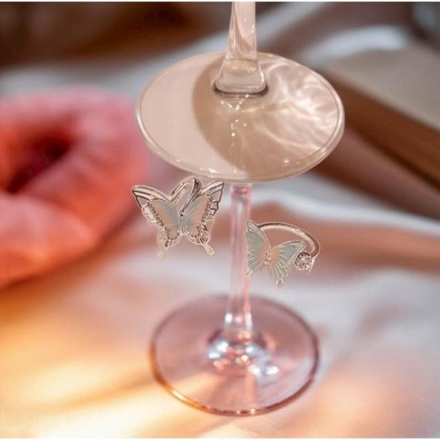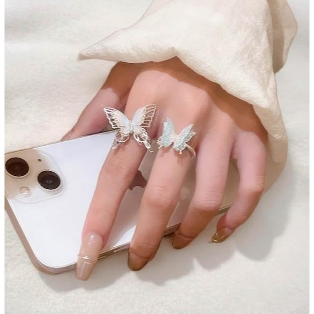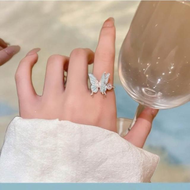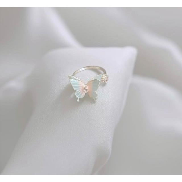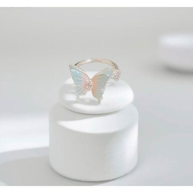 {遇見臻品}BE027超仙漸層彩色蝴蝶鋯石開戒指新中式耳飾品漸變戒指漸變粉藍雙層開口蝴蝶戒指彩色蝴蝶元素鋯石開口戒指指環