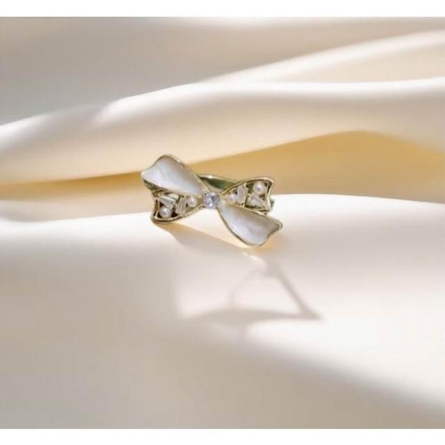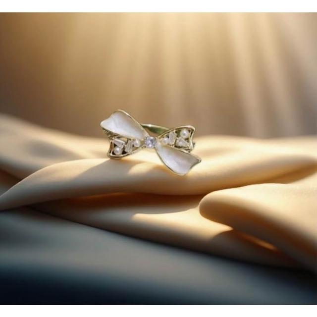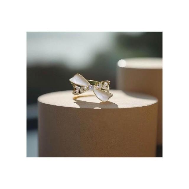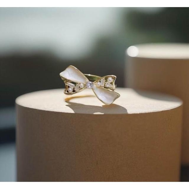 {遇見臻品}BE028蝴蝶結戒指滴釉戒指ins戒指冷淡風戒指蝴蝶結珍珠戒指珍珠戒指開口食指戒金屬個性戒指女生戒指新中式
